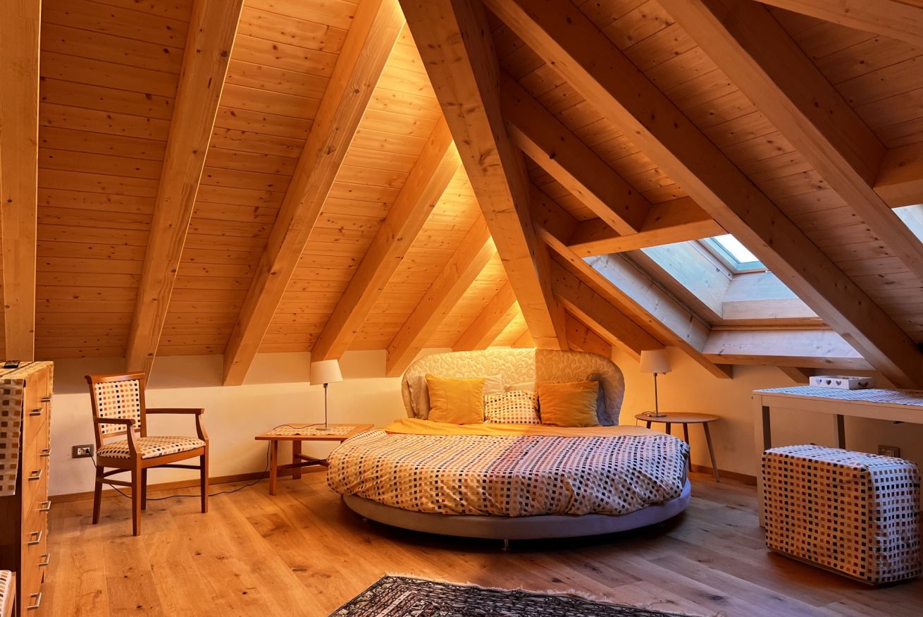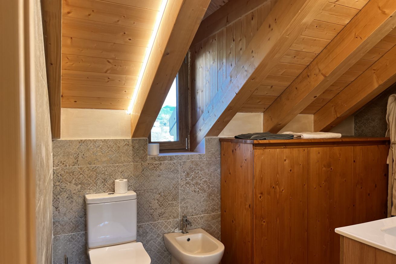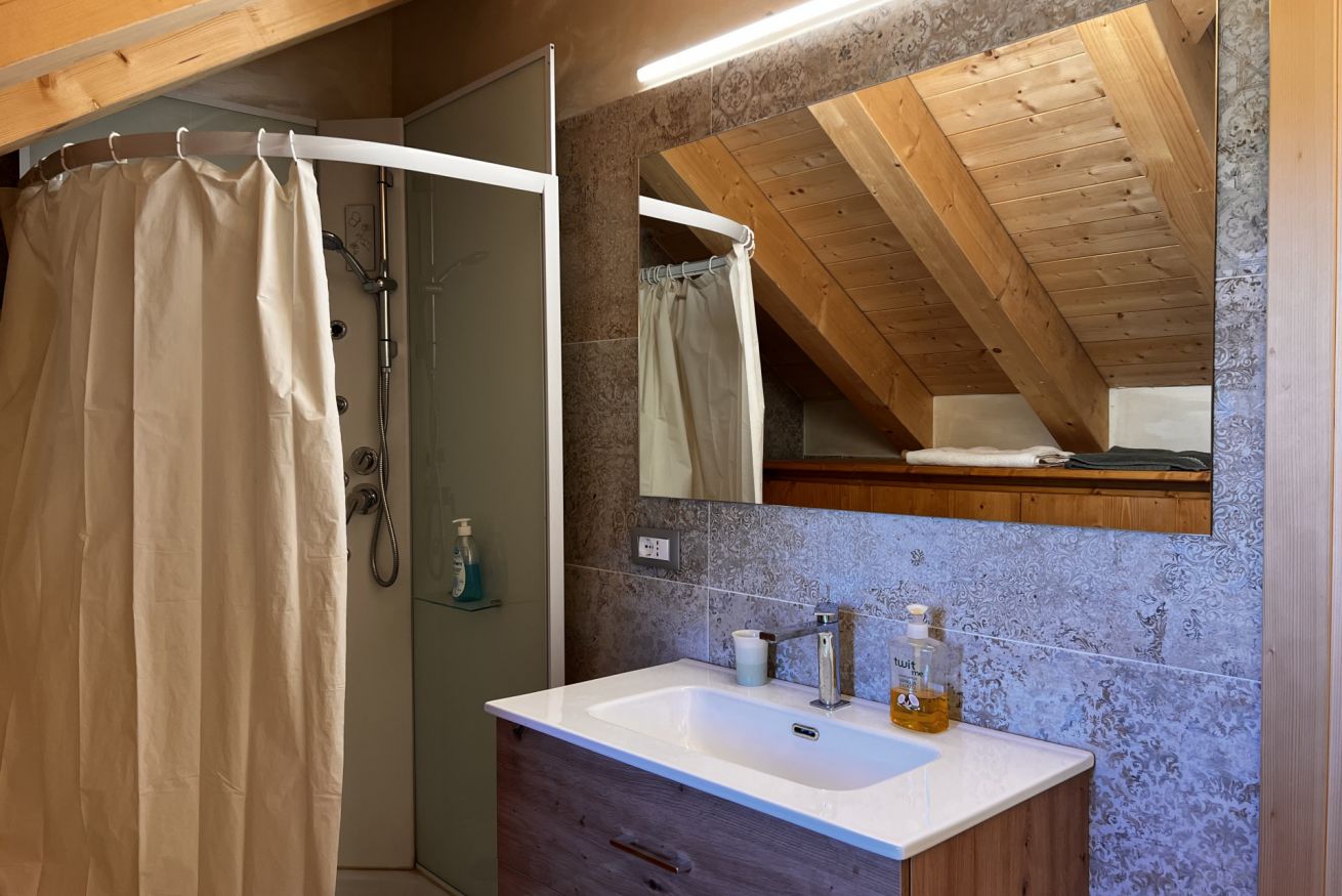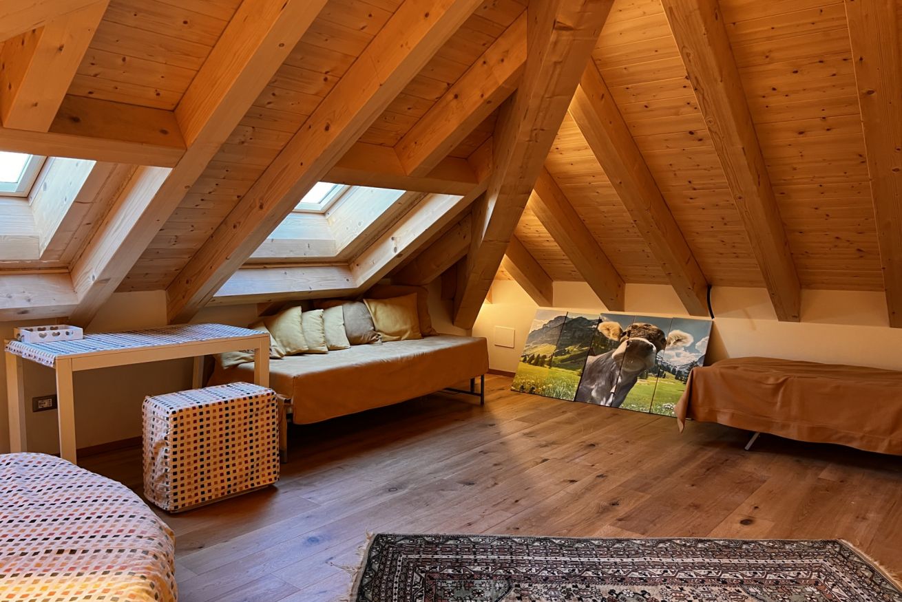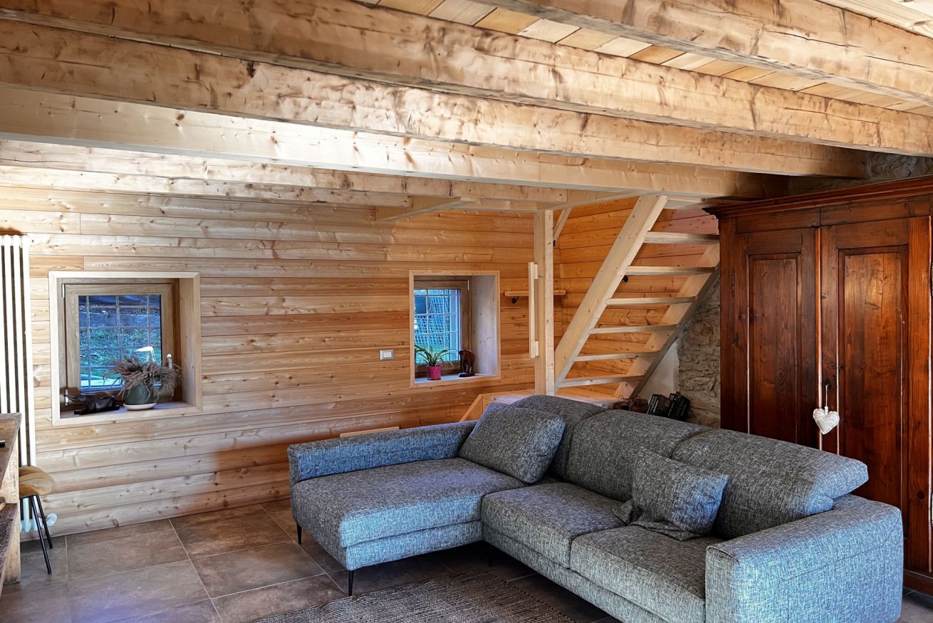Entrando, sarete accolti da un ampio soggiorno caratterizzato da travi in legno e un caminetto scoppiettante, perfetto per le serate invernali. L’ambiente è luminoso e arredato in stile rustico, con divani comodi, una Smart TV e un tavolo da pranzo in legno con sedie eleganti, ideale per momenti conviviali o per sorseggiare un caffè ammirando la vista panoramica.