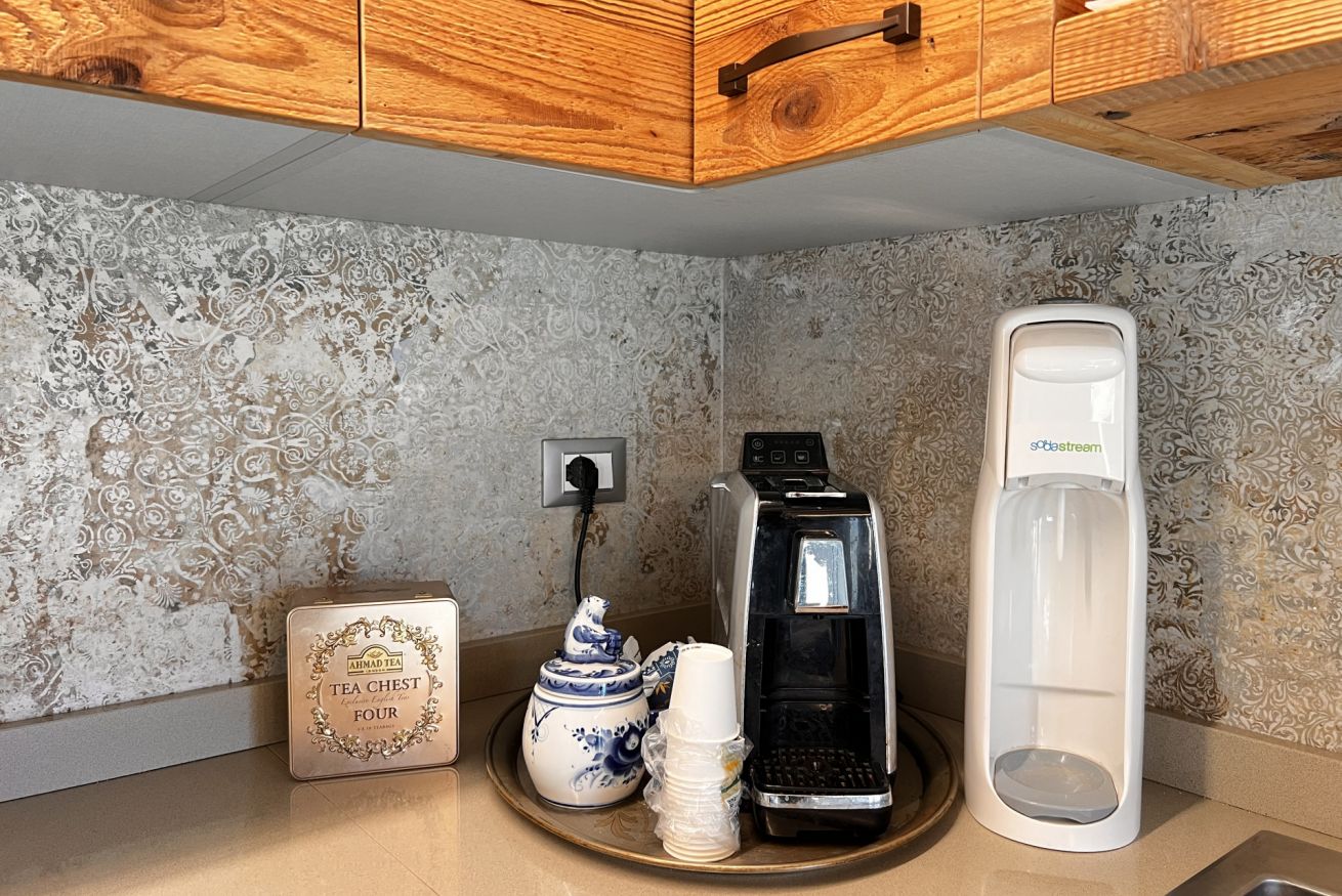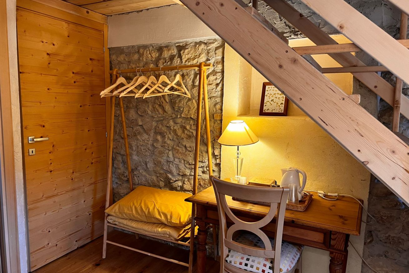 Per chi desidera combinare vacanza e lavoro, è disponibile una zona ufficio tranquilla, con luce naturale e vista rilassante. La zona dispone di un bagno completo e di due letti singoli che possono ospitare comodamente il nono e il decimo ospite della casa.