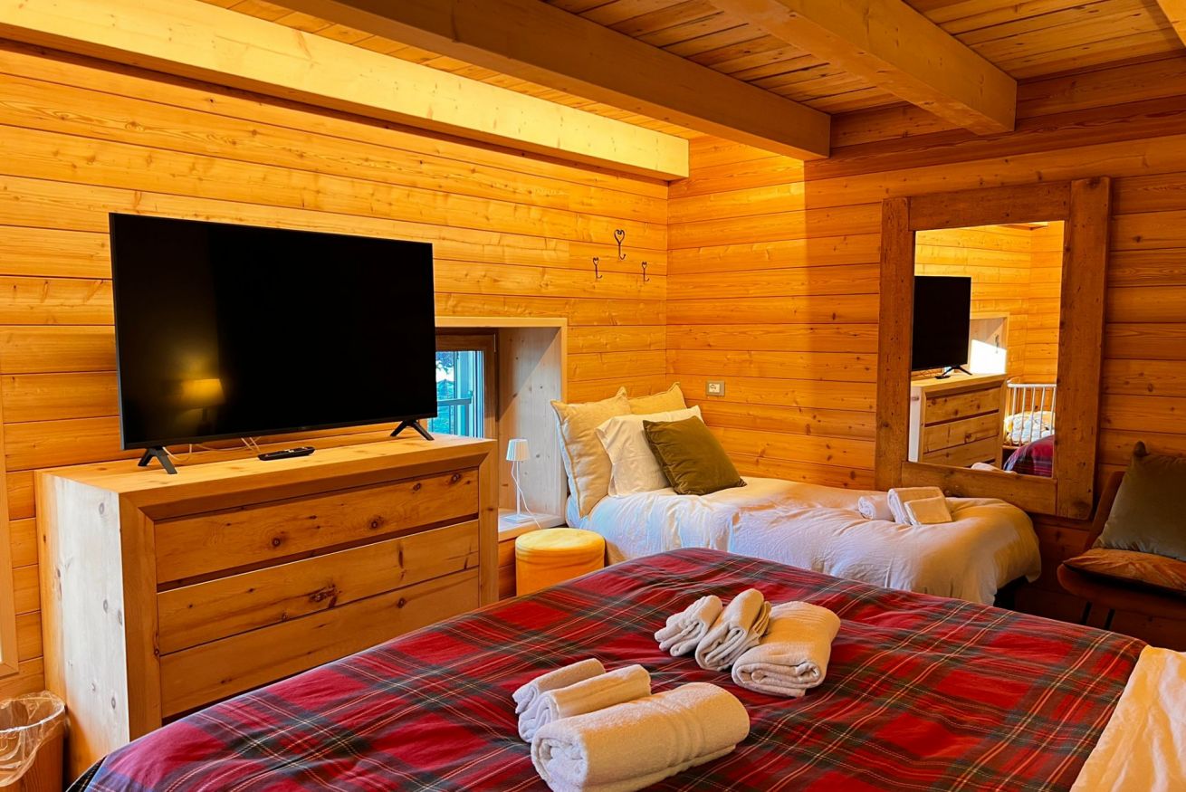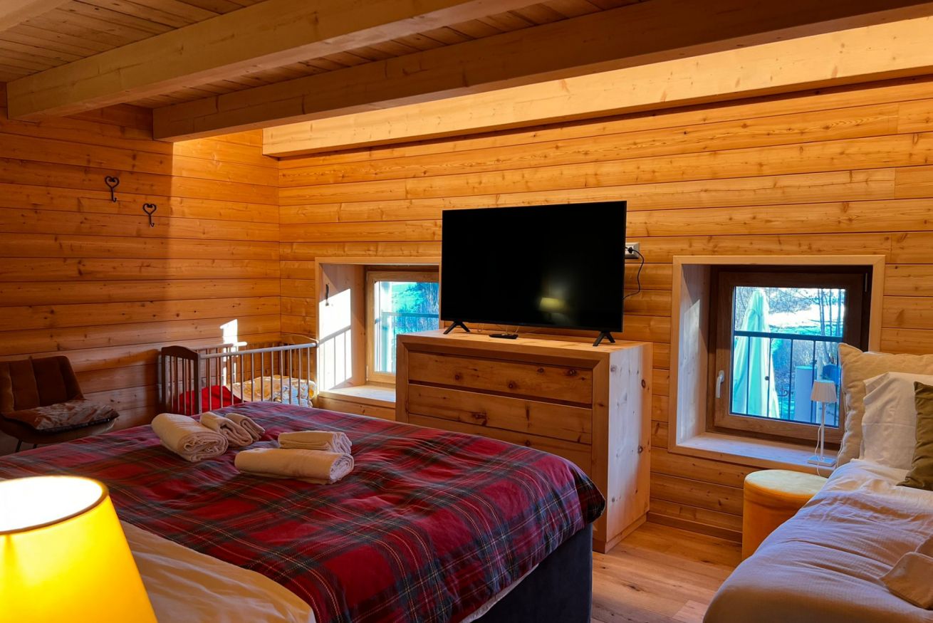 Lo chalet dispone di 4 camere da letto, ciascuna curata nei dettagli, con letti confortevoli, coperte e piumini caldi per notti tranquille.